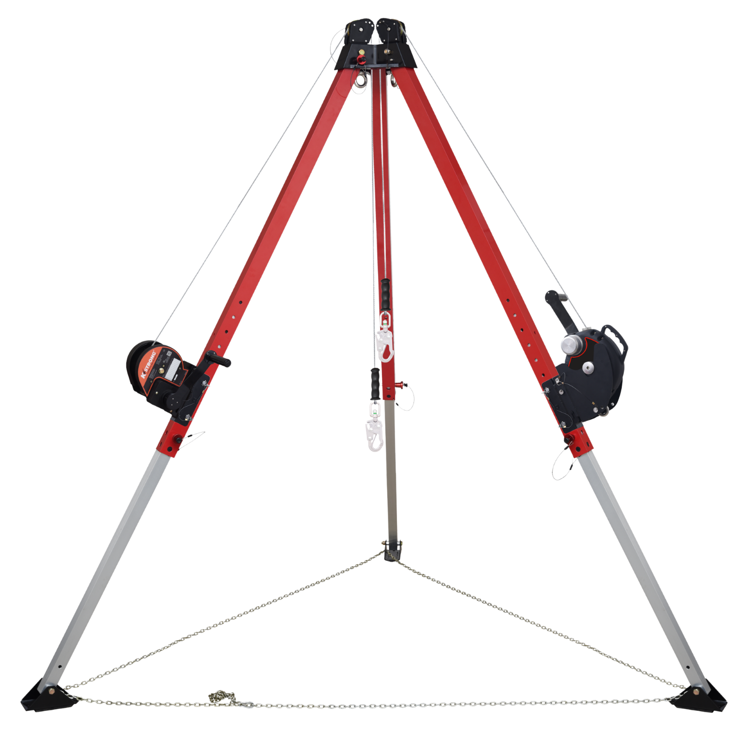 - 이중 일체형 헤드 마운트 풀리는 삼각대의 주조 알루미늄 헤드에 영구적으로 통합되어 윈치와 리트리버 블록에서 케이블을 독립적으로 넘길 수 있습니다.