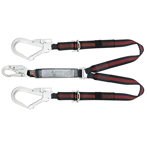 ANL408612(AD)-Ecor Shock Absorbing 44mm Webbing Adjustable Twin Lanyard c/w Snap Hook & Scaffold Hooks