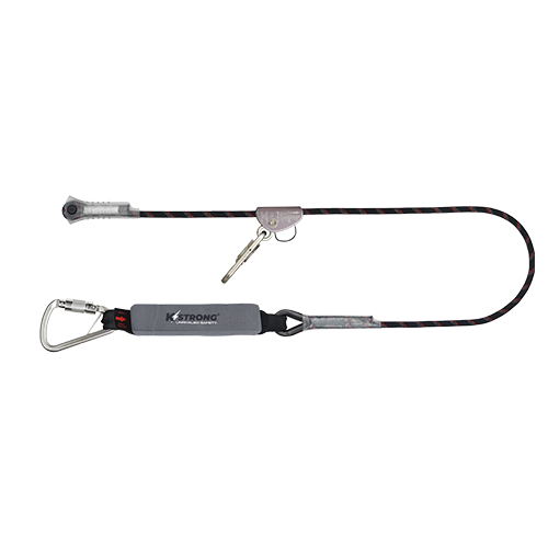 Ecor Shock Absorbing Adjustable Sharp Edge Kernmantle Rope Lanyard c/w Aluminum Rope grab & Karabiner and termination sleeve