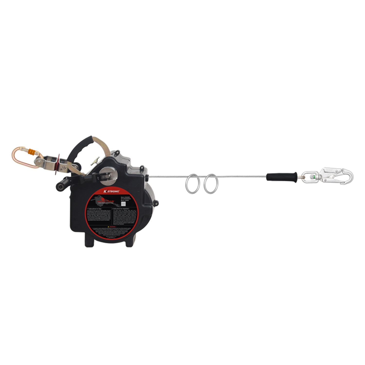 O ABS também funciona como indicador de queda. Possui catraca para regulagem e carregamento de tensão na linha. Possui 2 pontos móveis de ancoragem. A A100 vem em bolsa que é útil para seu armazenamento, transporte e instalação. Consulte a AMZ para equipamentos adicionais de instalação, por exemplo fitas e conectores.