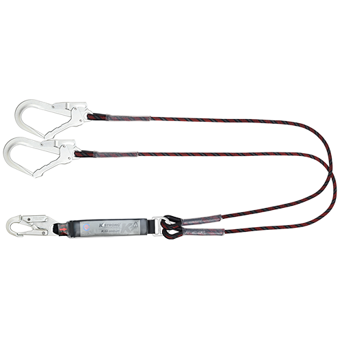Ecor Shock Absorbing Sharp Edge Kernmantle Rope Twin Lanyard c/w Snap Hook & Scaffold Hooks