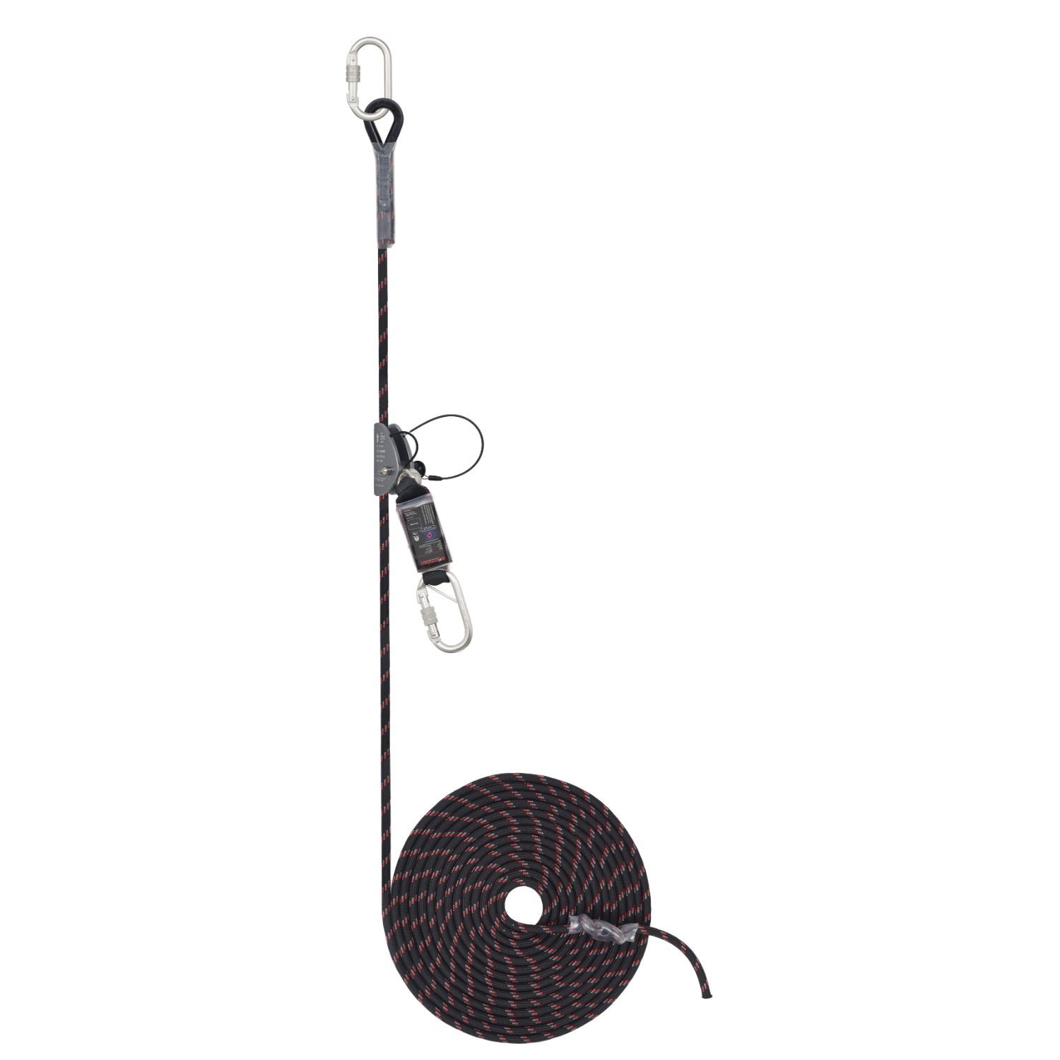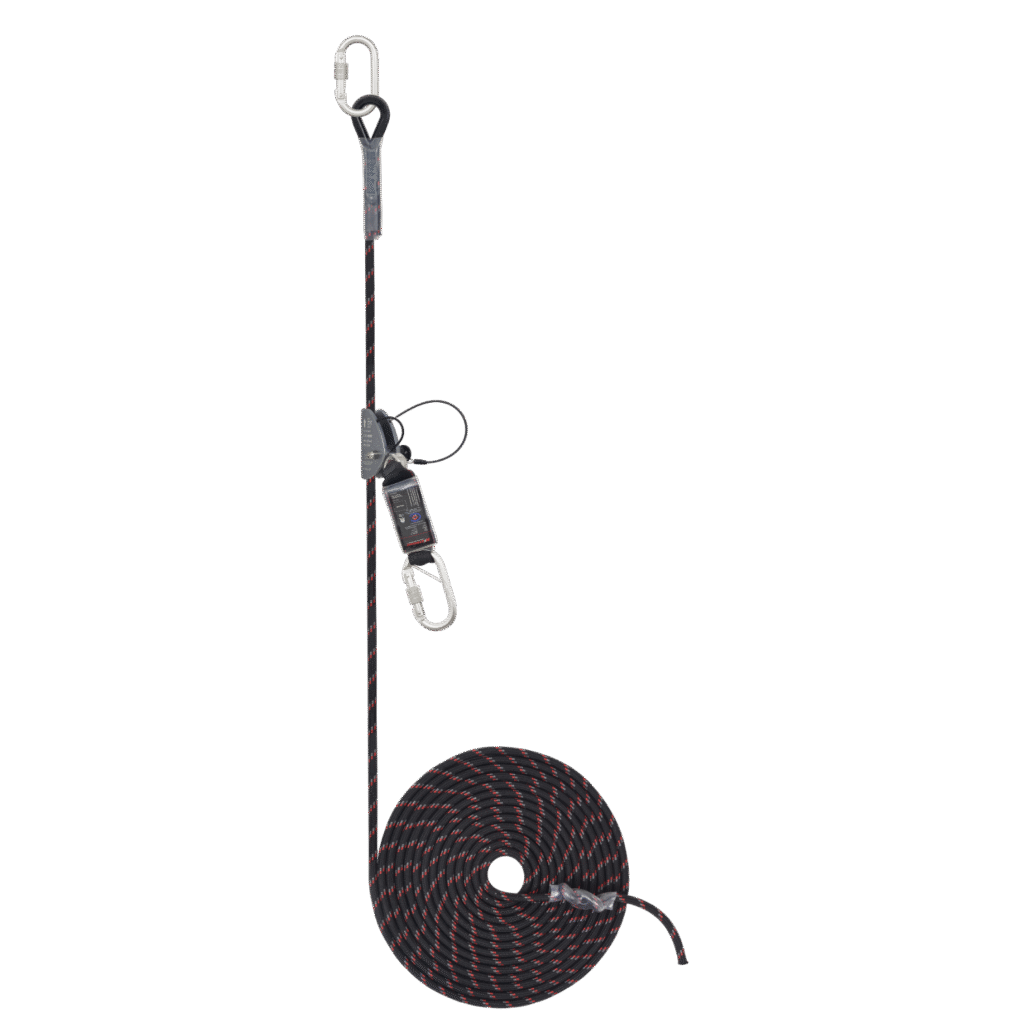 - 12mm Kernmantle Anchorage line is equipped with energy absorber, Rope grab (AFG801011) & steel Karabiner (AFC601100) for easy attachment to users the harness.